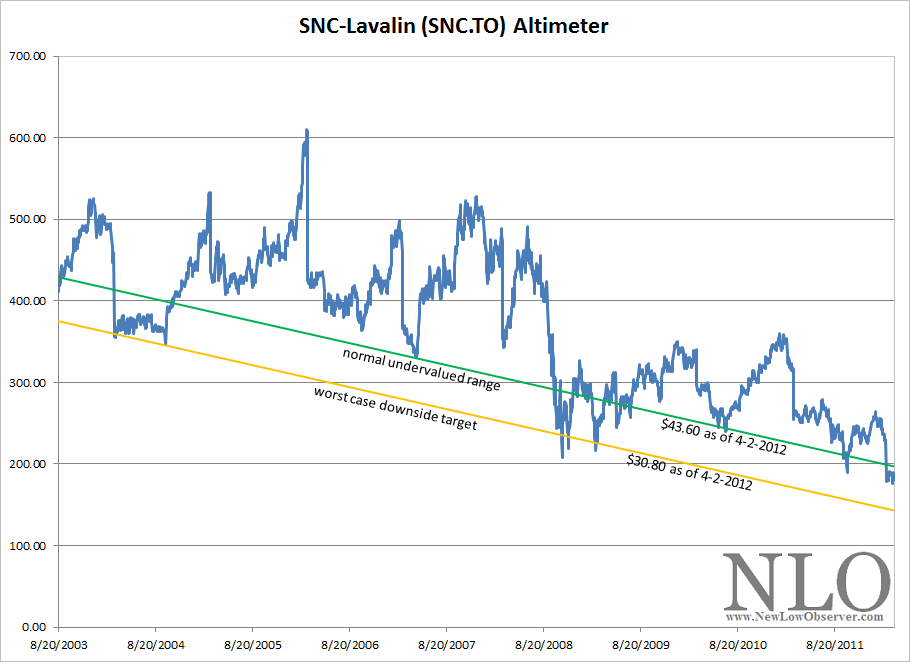 This watch summary will review Edson Gould’s Altimeter when applied to Gluskin Sheff (GS.TO) and SNC-Lavalin (SNC.TO). First up is the Altimeter for Gluskin Sheff (GS.TO). According to Yahoo!Finance, Gluskin Sheff “is a publicly owned investment manager. The firm also provides wealth management services.”