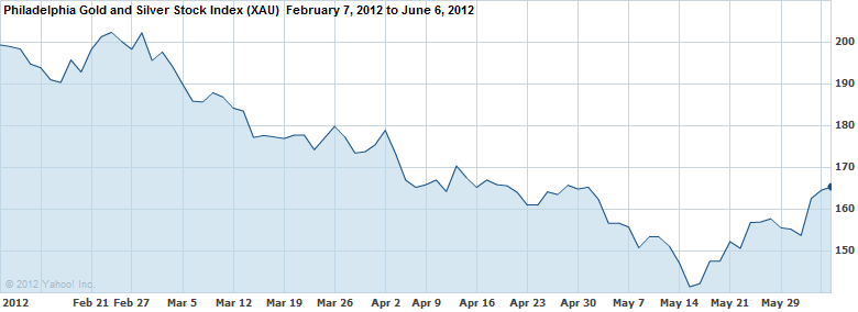 Since February 7, 2012, the XAU gold stock index declined -28.95% to the May 15th low. As we had anticipated, the “May/June” bottom was reached, for now. Ordinarily, this would be the time to buy gold stocks, especially those that pay a dividend. However, in our May 27th transaction review of NUGT (found here), we said that, based on our Gold Stock Indicator, there would be a second opportunity to buy gold stocks at a considerable value.