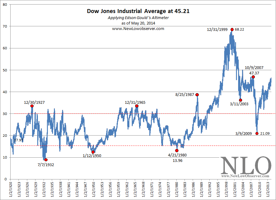 As the Dow Industrials meander near all-time highs, it is necessary to review Edson Gould’s Altimeter for the index.