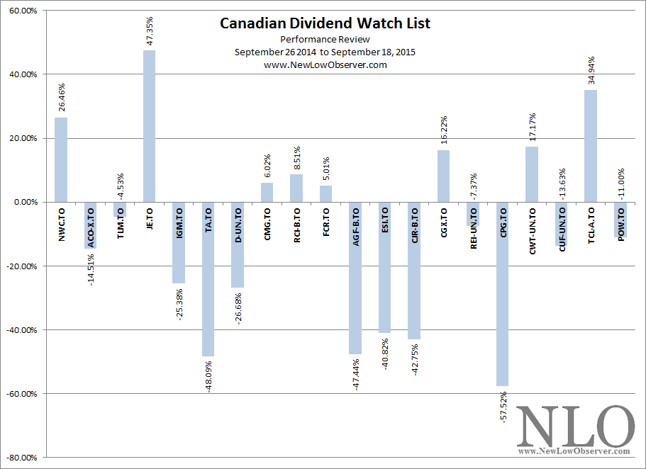 The performance of the Canadian Watch List from September 2014 is listed below: