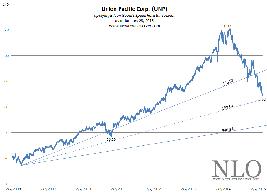 Below is the Speed Resistance Lines for Union Pacific (UNP) based on the move from 2009 to the present.