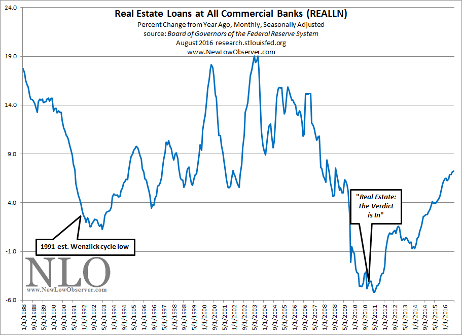 We think that a decline in the above mentioned indicators would be healthy at this point. It would certainly aid in our view that Roy Wenzlick’s real estate cycle theory is still intact.