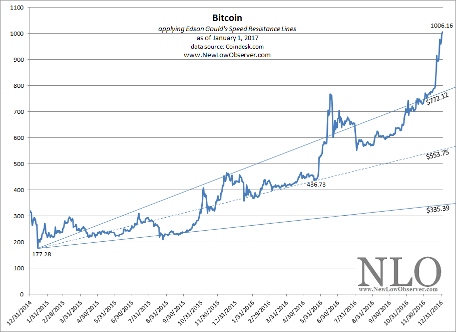 “If the current run-up is anything like those in the past, $1,051 could be a relatively small number. However, each of the indicated upside targets must be achieved first before we can start giving estimates of how far beyond $1,051 Bitcoin could go.”