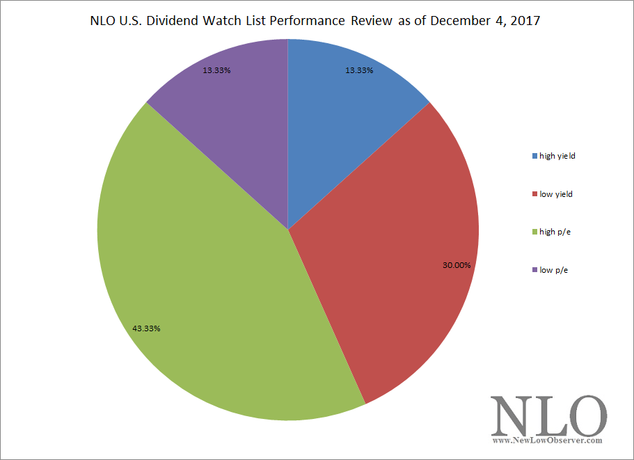 Below is the 2-year total return performance of our Dividend Watch List from December 4, 2015 to December 2, 2017 as compared to the Dow Jones Industrial Average.
