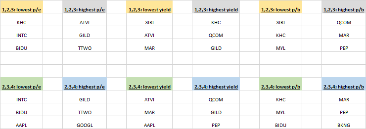 Below is the ranking of stocks in the 1st, 2nd, & 3rd categories and the 2nd, 3rd, & 4th categories.