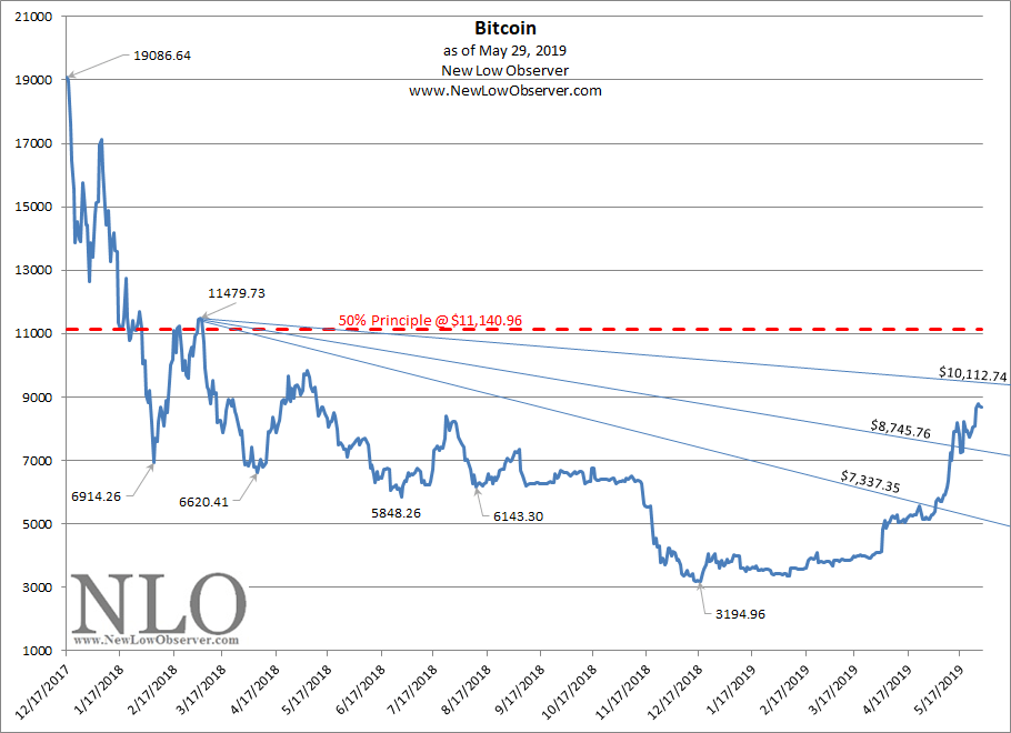 As Bitcoin has increased from the low (so far), we have updated our upside and downside targets below.