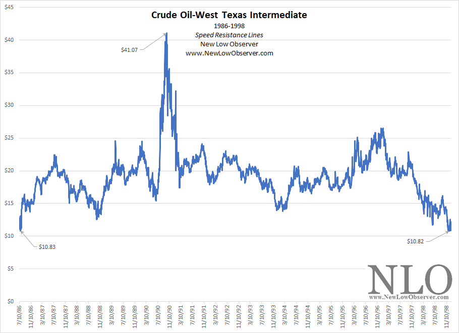 In the period from 1986 to 1998, crude oil experienced a full cycle that included an increase of +279% and a decline of -73%.