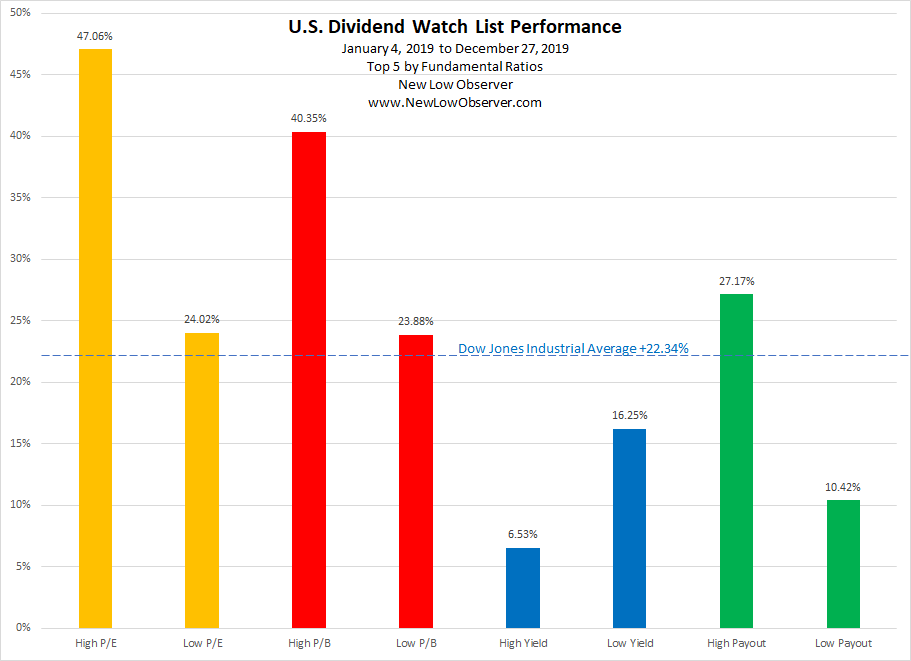 The category to beat from our January 4, 2019 watch list was the High P/E group as opposed to the Low P/E group where the gain was +47.06% as compared to +24.02%, respectively.
