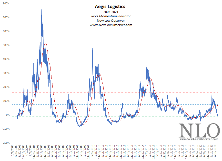 Below is a chart of Aegis Logistics from 2003 to 2021, reflecting Price Momentum data.