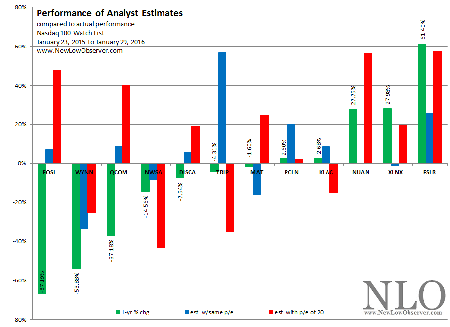 On February 18, 2015, we generated the following list of stocks for consideration with their respective performance one year later: