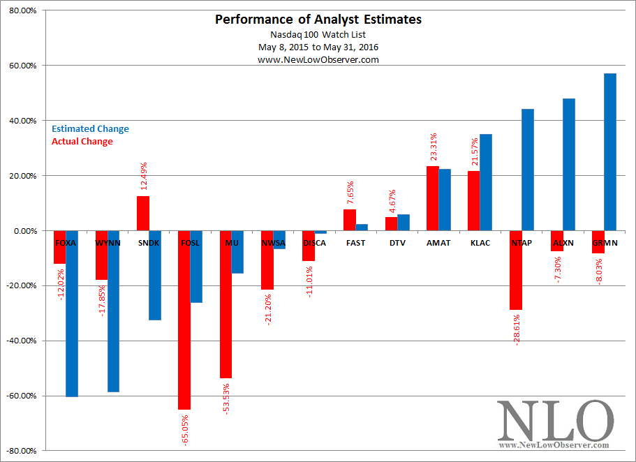 There was little surprise in the performance of the stocks on the watch list. As a group (equally weighted) the average change was –24.40% compared to the Toronto Stock Exchange decline of –17.49%.