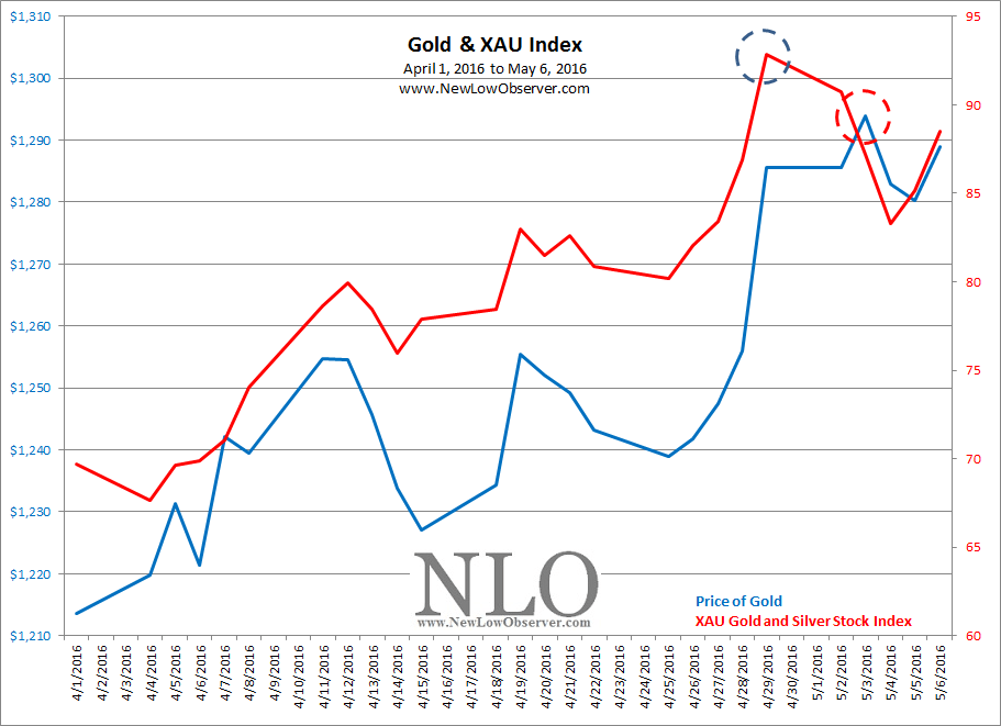 In the month since our last posting, gold has increased only +6.21% while the price of the Philadelphia Gold & Silver Stock Index (XAU) has increased +26.97% in the same period of time.