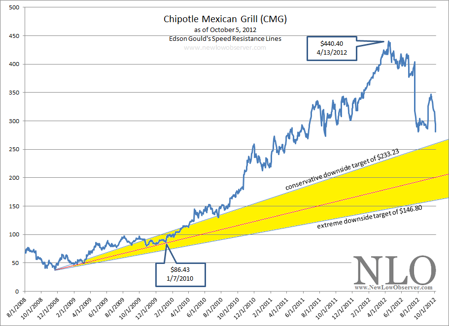 Our extreme downside target of $146 is based on our October 6, 2012 CMG revised target as seen in the chart below: