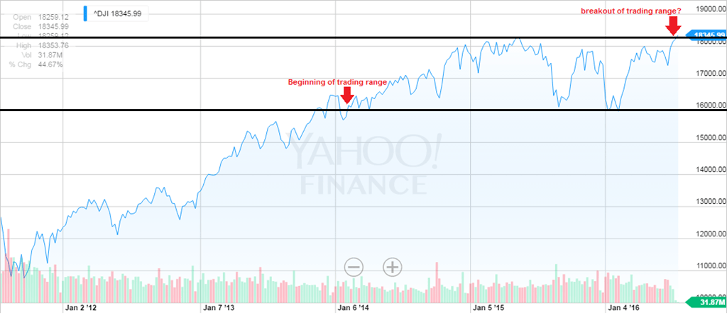 Hamilton suggests that a trading range is equal to or greater than a parabolic move up or market crash. The current market environment has provided us with what we believe is a trading range which began in February 2014.