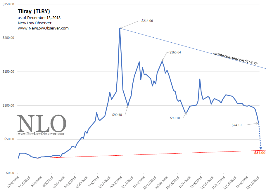 For the time being, we will attempt an unusual approach to using the Speed Resistance Lines. Typically, our downside targets are based on the most recent all-time high. In this case, that would mean basing the current downside targets on the $440.62 price. However, the current decline has been so disastrous that we’re going to utilized the 2015 peak price of $158.31 as the basis of our downside targets.