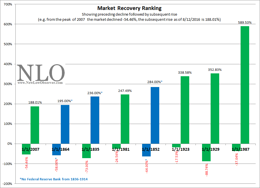 From all appearances, the stage is set for takeoff from a volume standpoint. And yet, the stock market, as represented by the Dow Jones Industrial Average, since the 2009 low is already ranked seventh on the list of recoveries from prior crashes since 1835. Can the market achieve the vaunted heights of 10 times the prior low as was the case in 1942 to 1966 or 1982 to 1997? Considering that the period of the interest rate cycle corresponds to the 1942 period, we think there is a distinct possibility that “takeoff” is a possibility.
