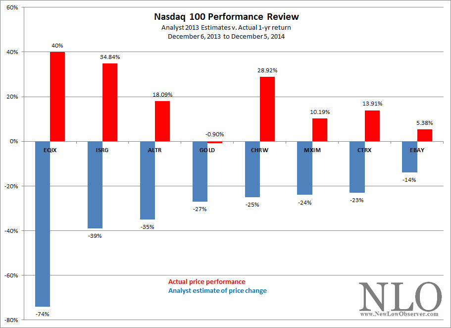 Below is the chart of analyst estimated returns from December 6, 2013 compared to the performance one year later: