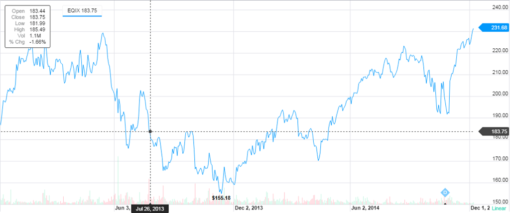 As has been the case for some time, analyst estimates have fallen far from the mark when assessing the prospects for stocks.  At the time, Equinix (EQIX) was considered by analysts to have the worst prospects.  As it happens, Equinix managed to gain the most among the stocks that we tracked last year.  For our part, we had EQIX on our radar as early as July 26, 2013.  We said the following of the stock: