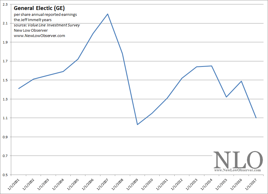 This leads us to the Jeff Immelt era as Chairman & CEO of General Electric from 2001 to 2017. There could not have been a worse period to be in charge of a hobbling industrial giant that is hamstrung with well entrenched accounting methods that work against the company when the stock price isn’t in a rising trend.