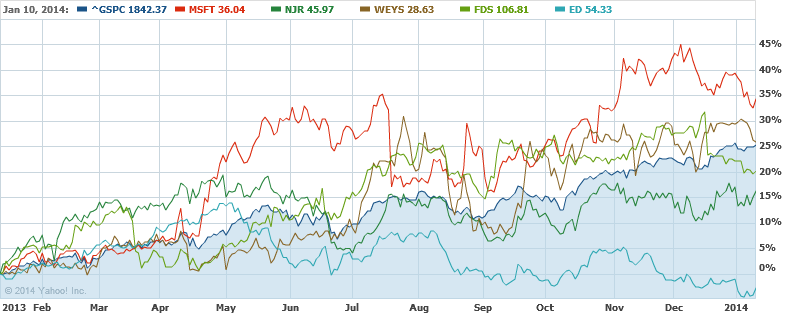 In our ongoing review of the NLO Dividend Watch List, we have taken the top five stocks on our list from February 1, 2013 and have checked their performance one year later. The top five companies on that list can be seen in the table below.