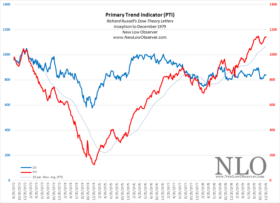 Below is the Richard Russell’s Primary Trend Indicator (PTI) from inception in 1980-1989.