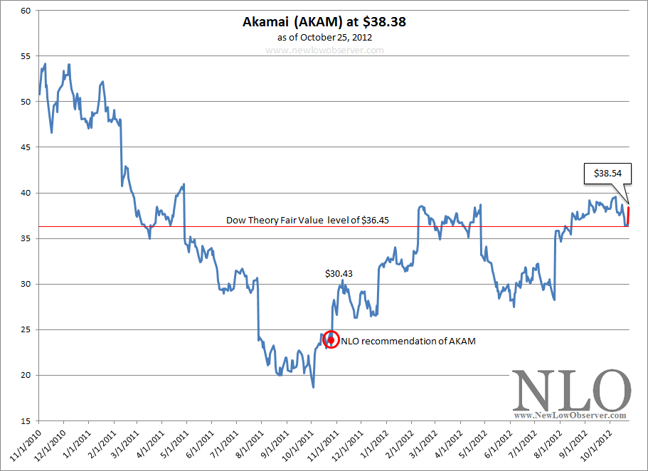 A favorite default reaction for a stock that is near a new low is to look at Value Line Investment Survey for a specific piece of information. In the legend box provided by Value Line, it indicates the most reliable measure of historical mean price that the stock trades at. Sometimes that measure is based on cash flow, earnings, earnings divided by interest rate, book value etc. Regardless of the measure, Value Line’s estimated mean value is quite reliable. If the stock is above or below the mean figure it helps provide a target that we can expect the price to revert to at some point in the future. The quality of the mean figure hinges on the quality of the stock. If for some reason there doesn’t seem to be any consistency in the Value Line estimate then we discard it outright and only use Dow Theory’s fair value as the substitute mean. However, we have found the Value Line estimate to be reasonably reliable for the majority of stocks that we track.