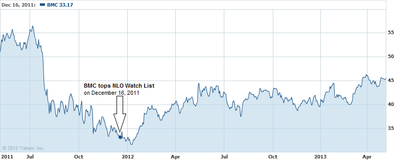Since the stock price of Bank of Hawaii had been in a rising trend for an extended period of time it was difficult to gain new insight from looking at the chart. However, what we did notice was the surge in volume of shares traded when the stock was nearing a low. Given this pattern, we said: