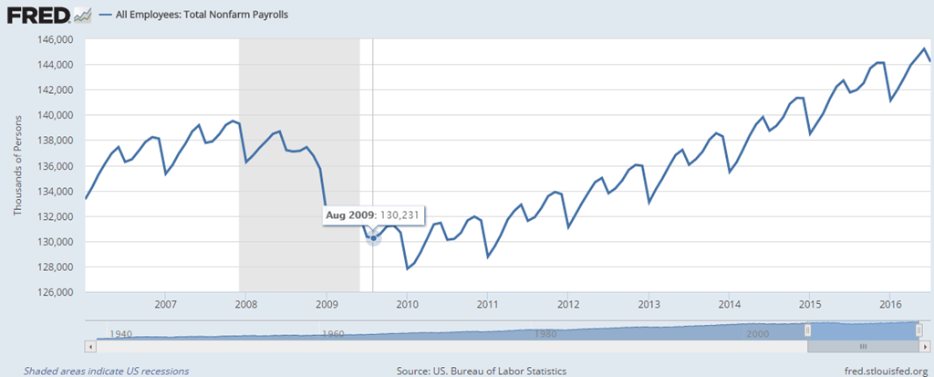 So far, the unemployment rate has declined to 4.10%, an average of the 3.80% and 4.40% that was anticipated last year. It is no monumental feat to suggest that the unemployment rate could decline from the level of 4.80% to 4.40% in 2017. However, is something else to suggest that the unemployment rate could get down to 3.80% when it was hovering around 7.50% on July 26, 2013.